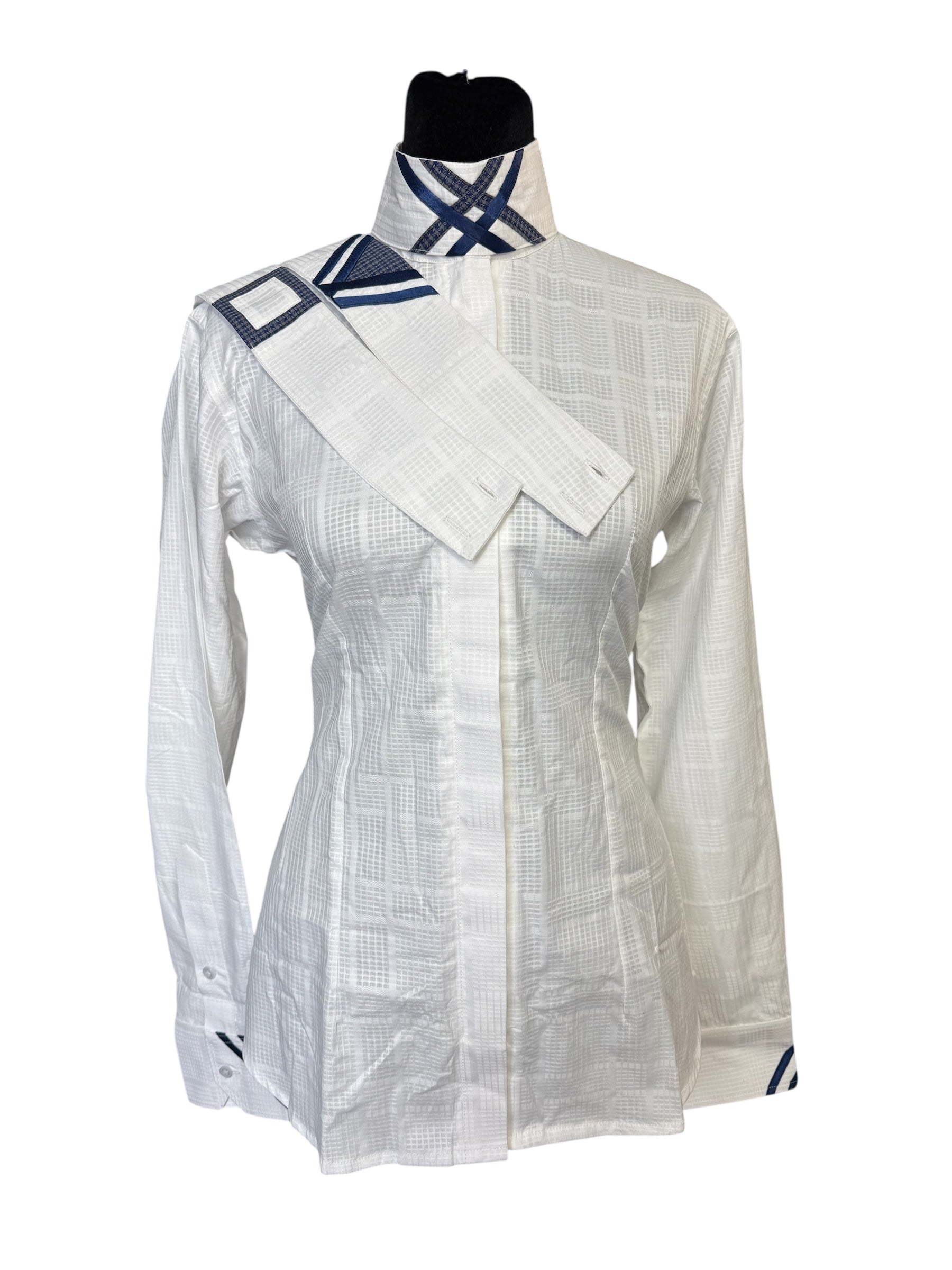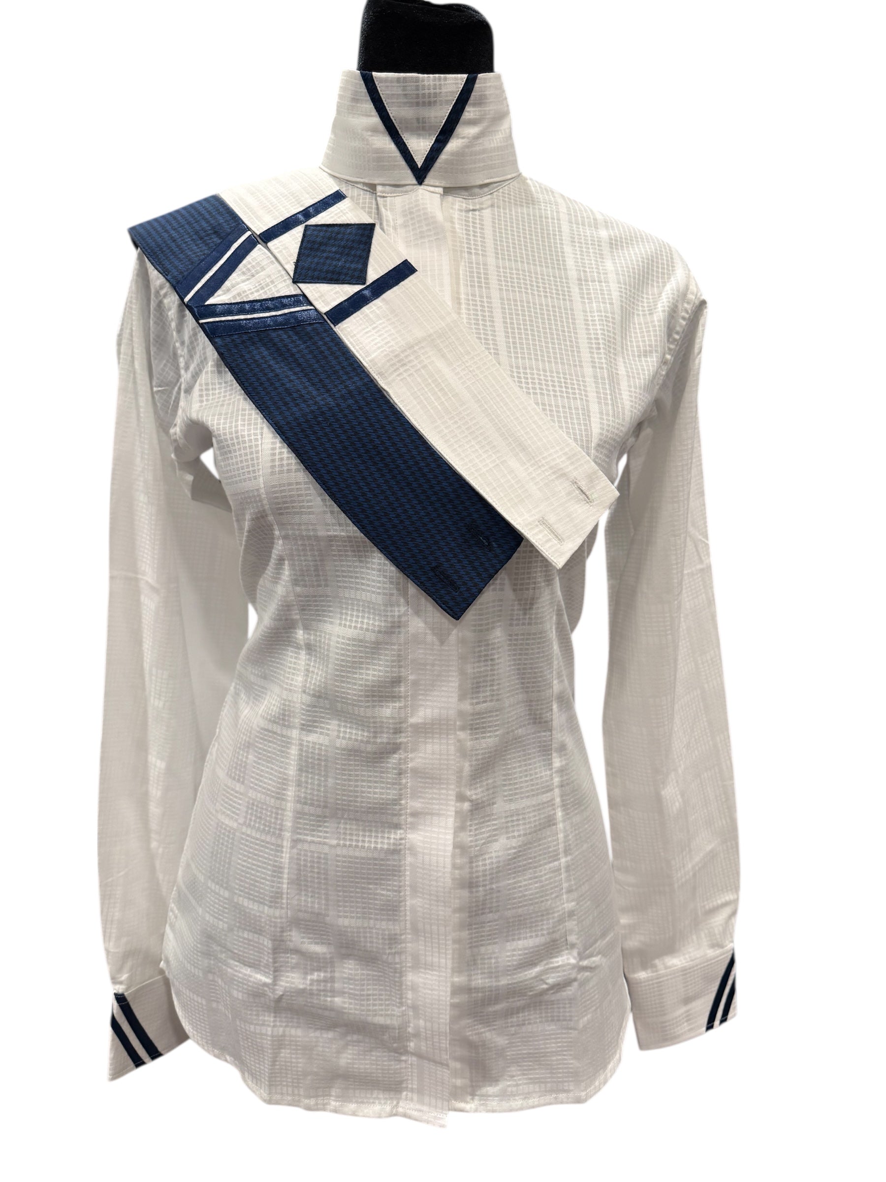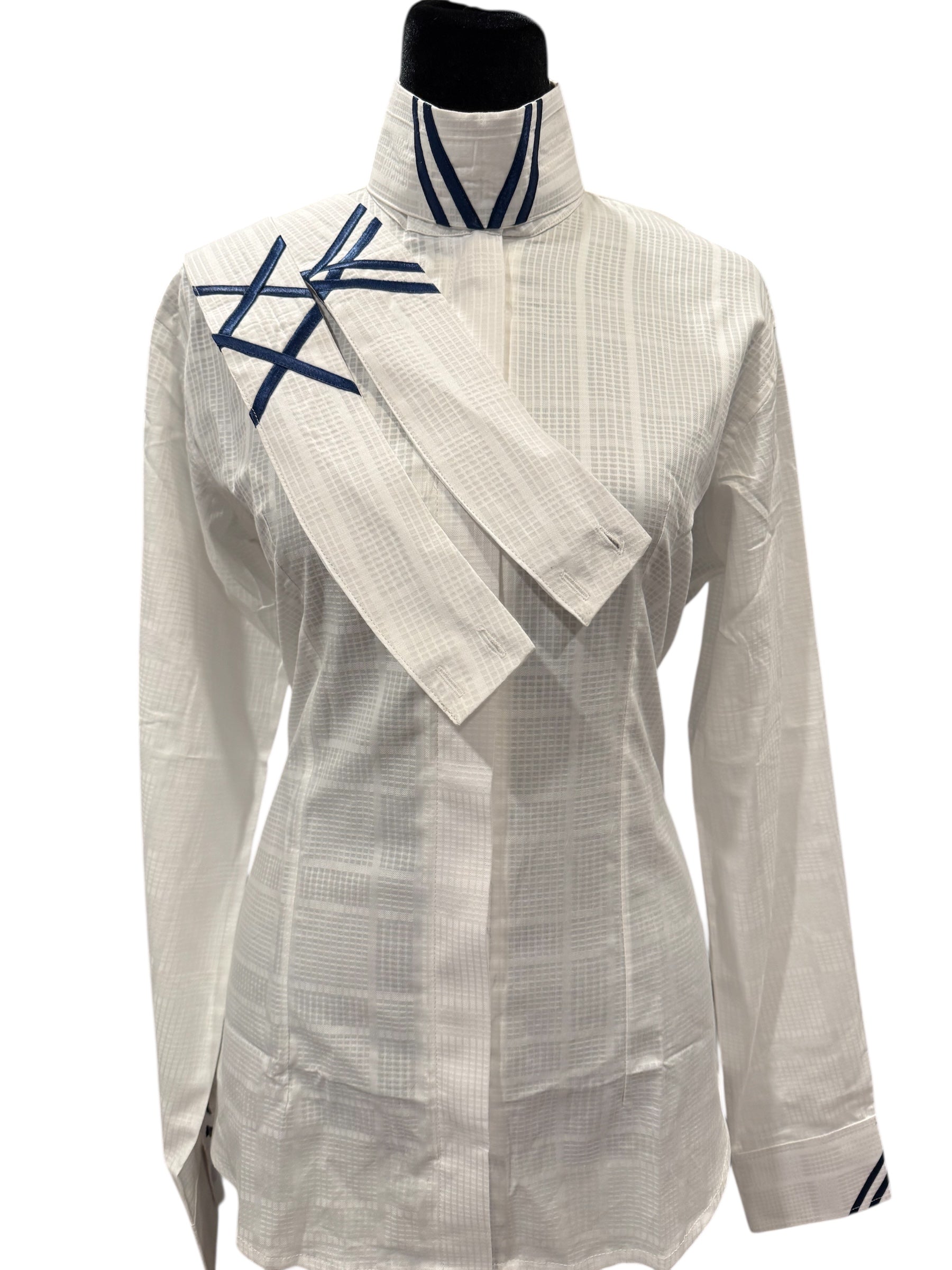 English Show Shirt “Hidden Zipper” White with Navy accents