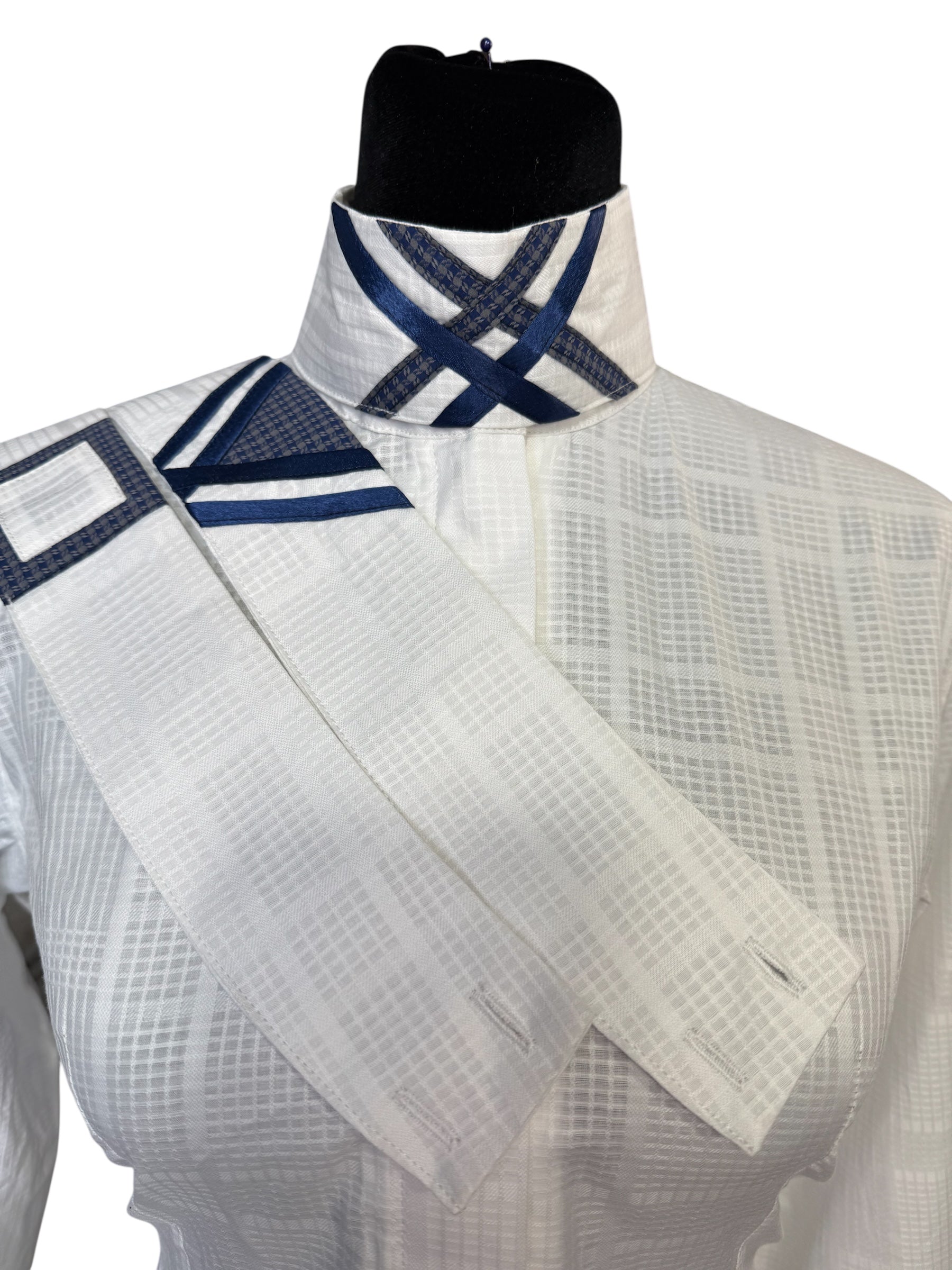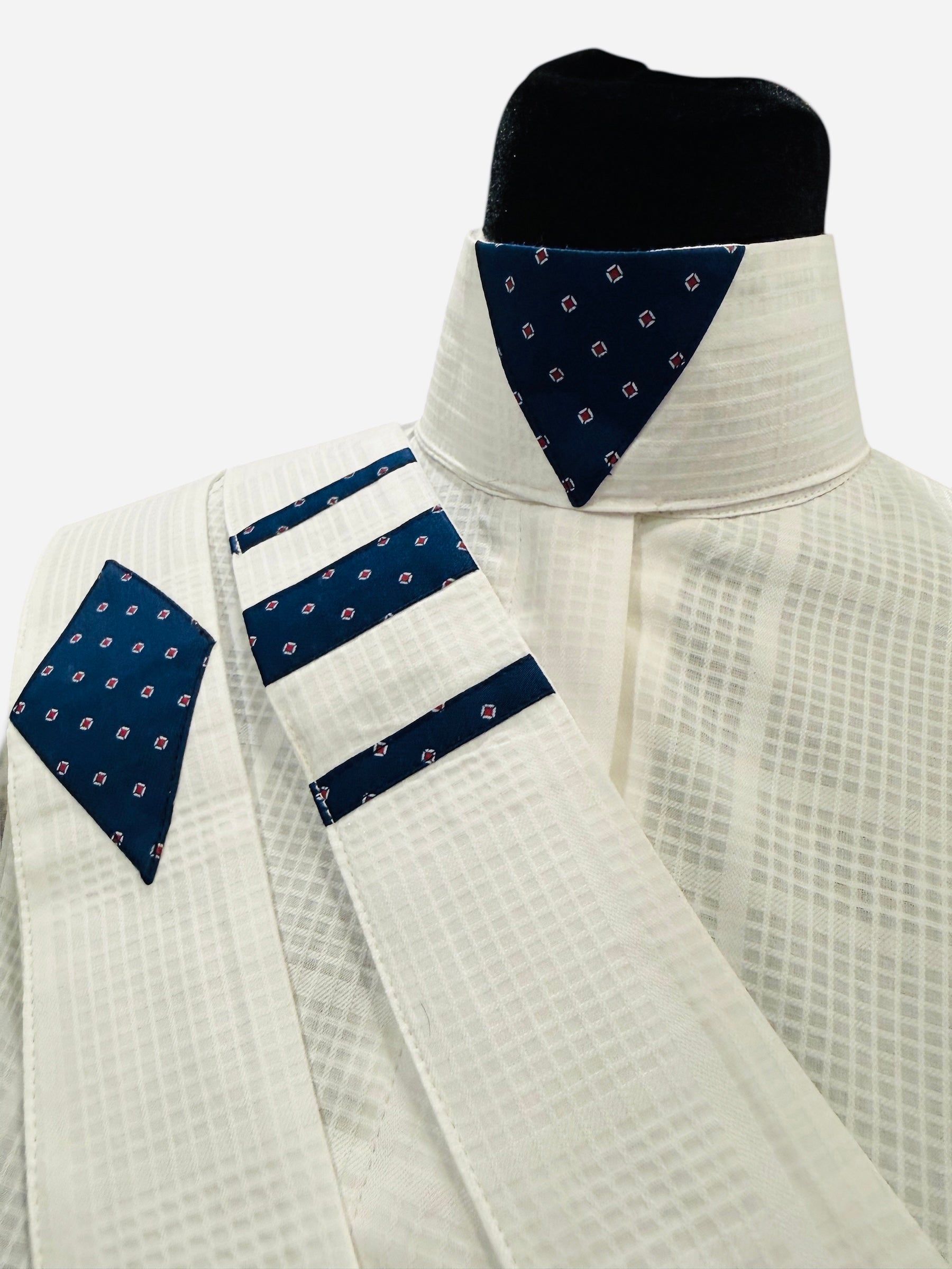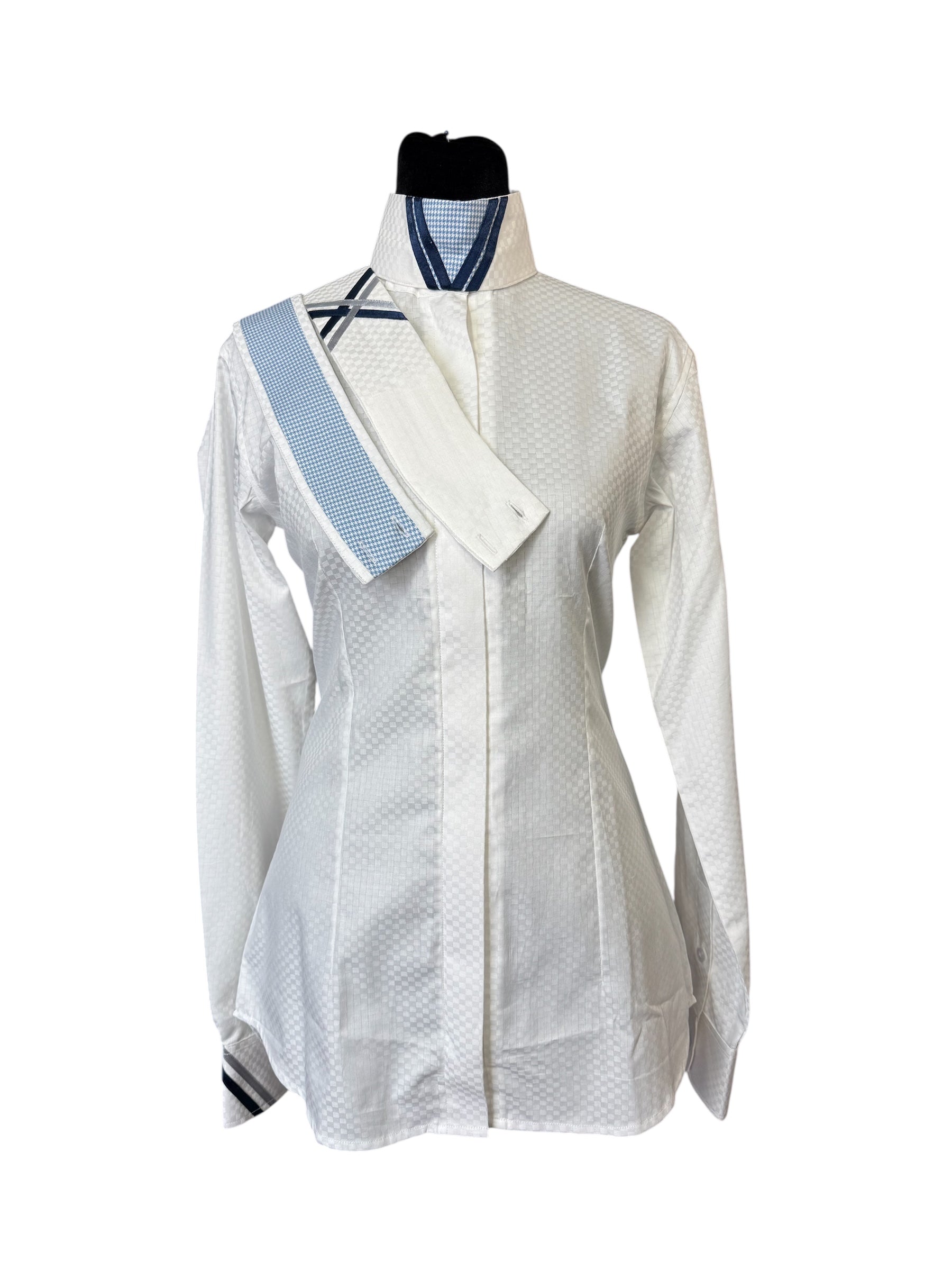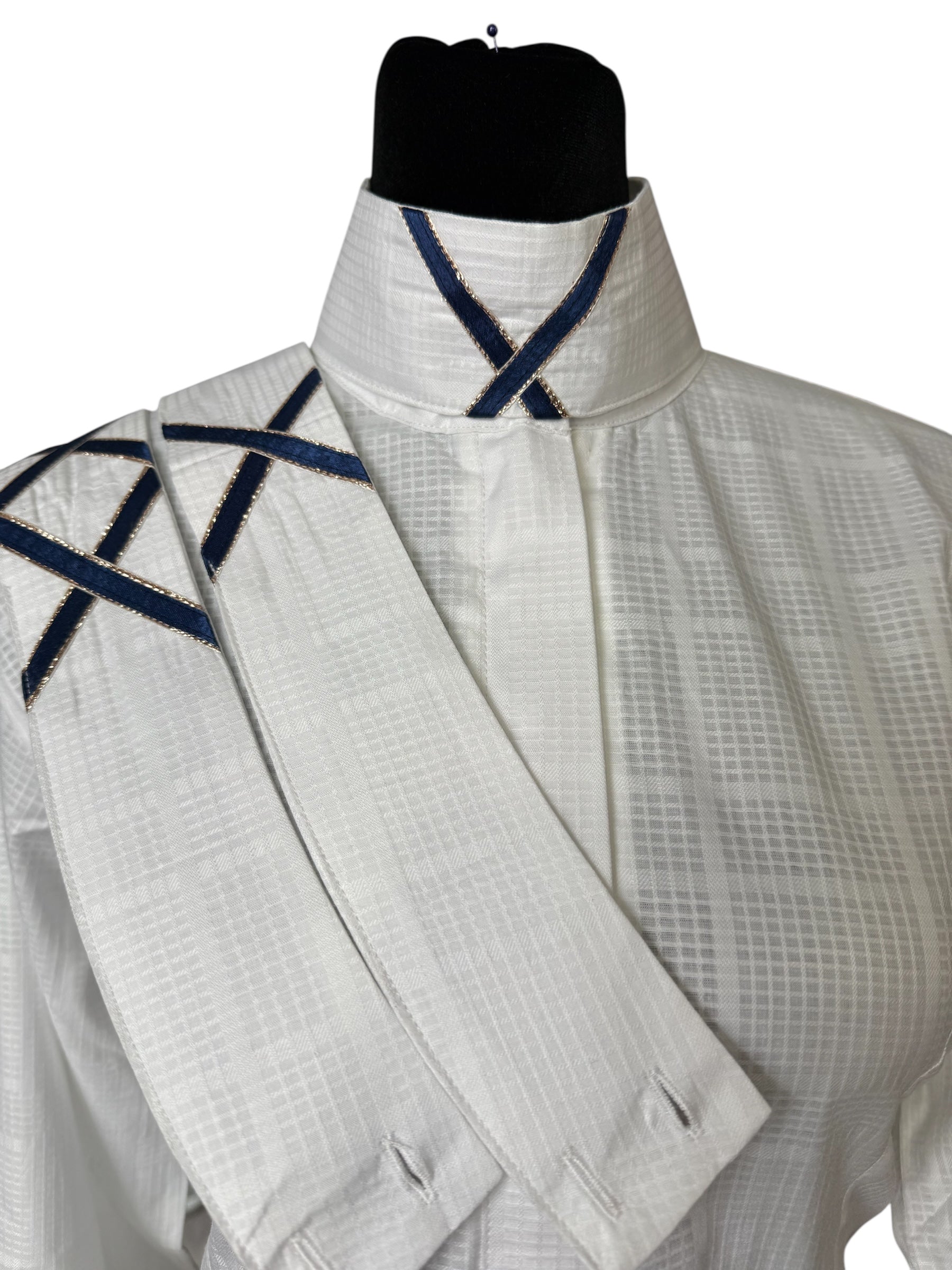 English Show Shirt “Hidden Zipper” White with Navy accents