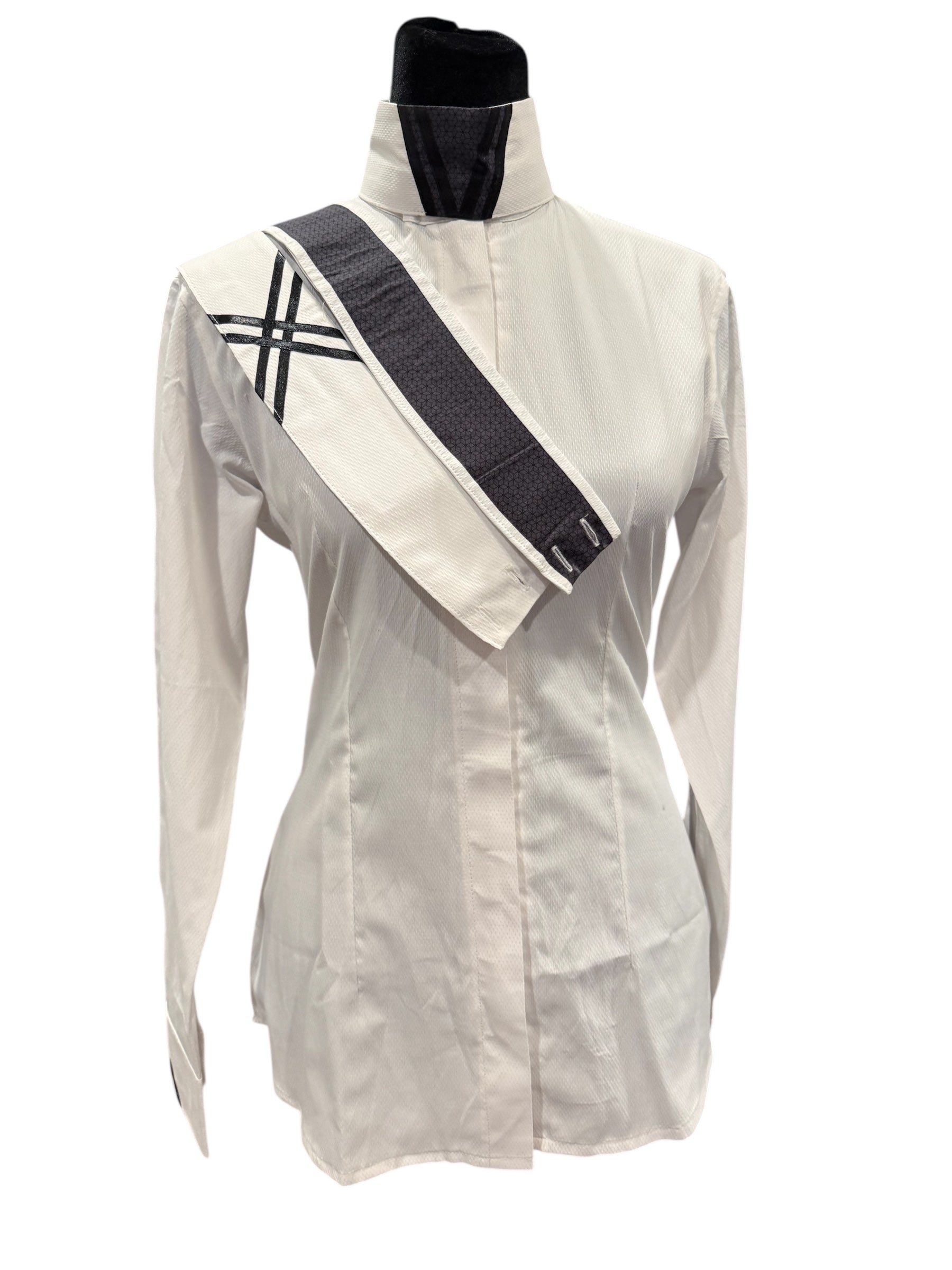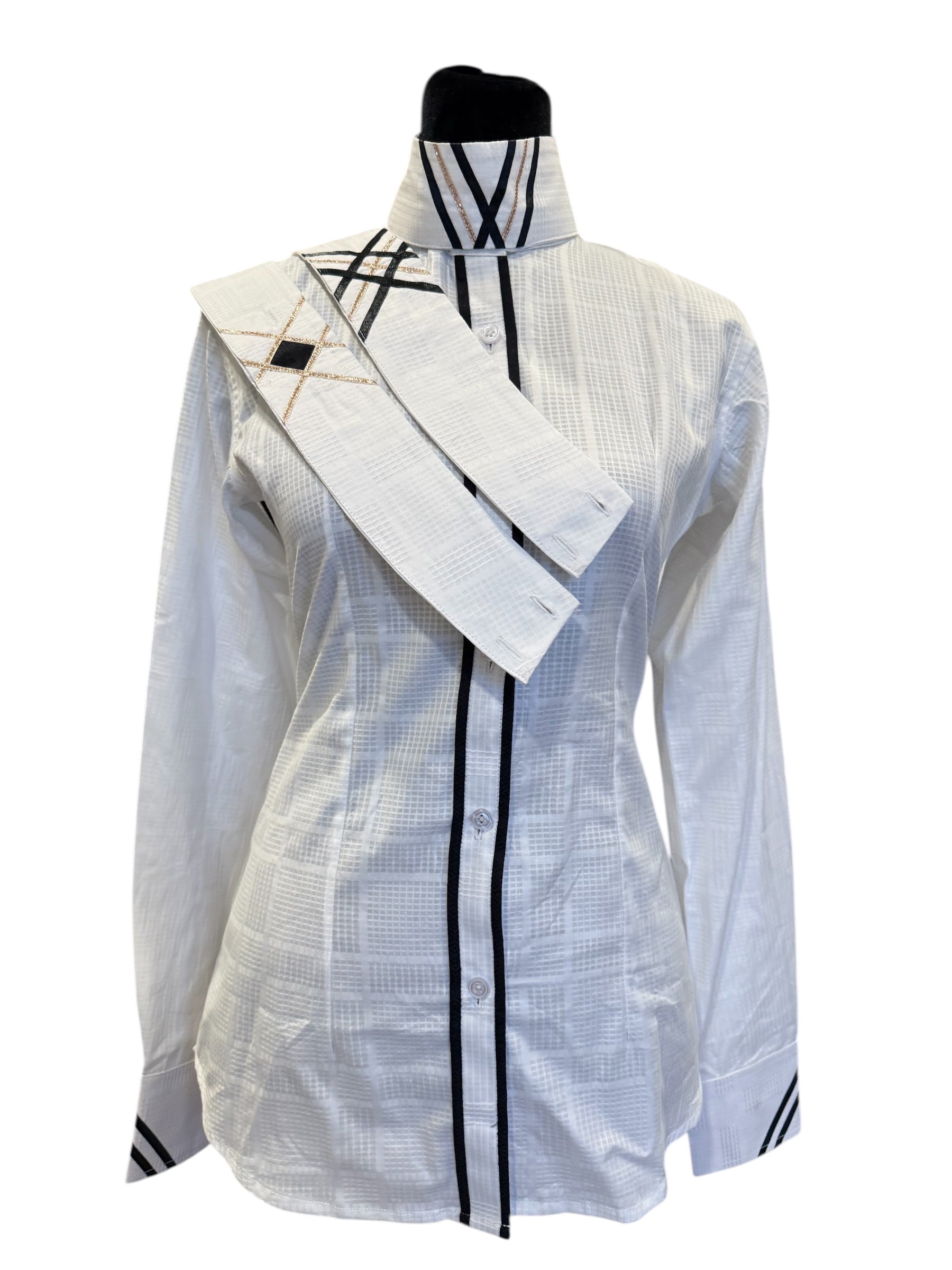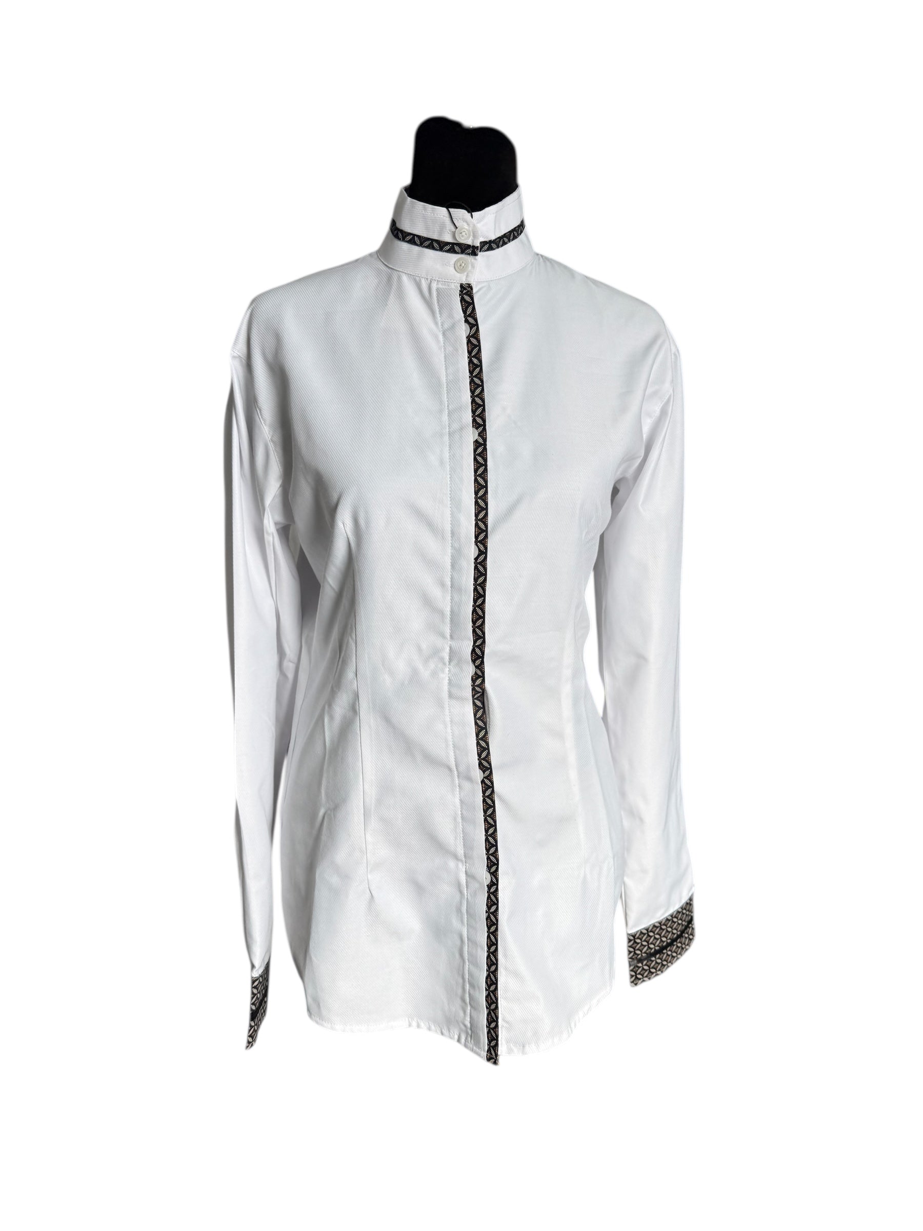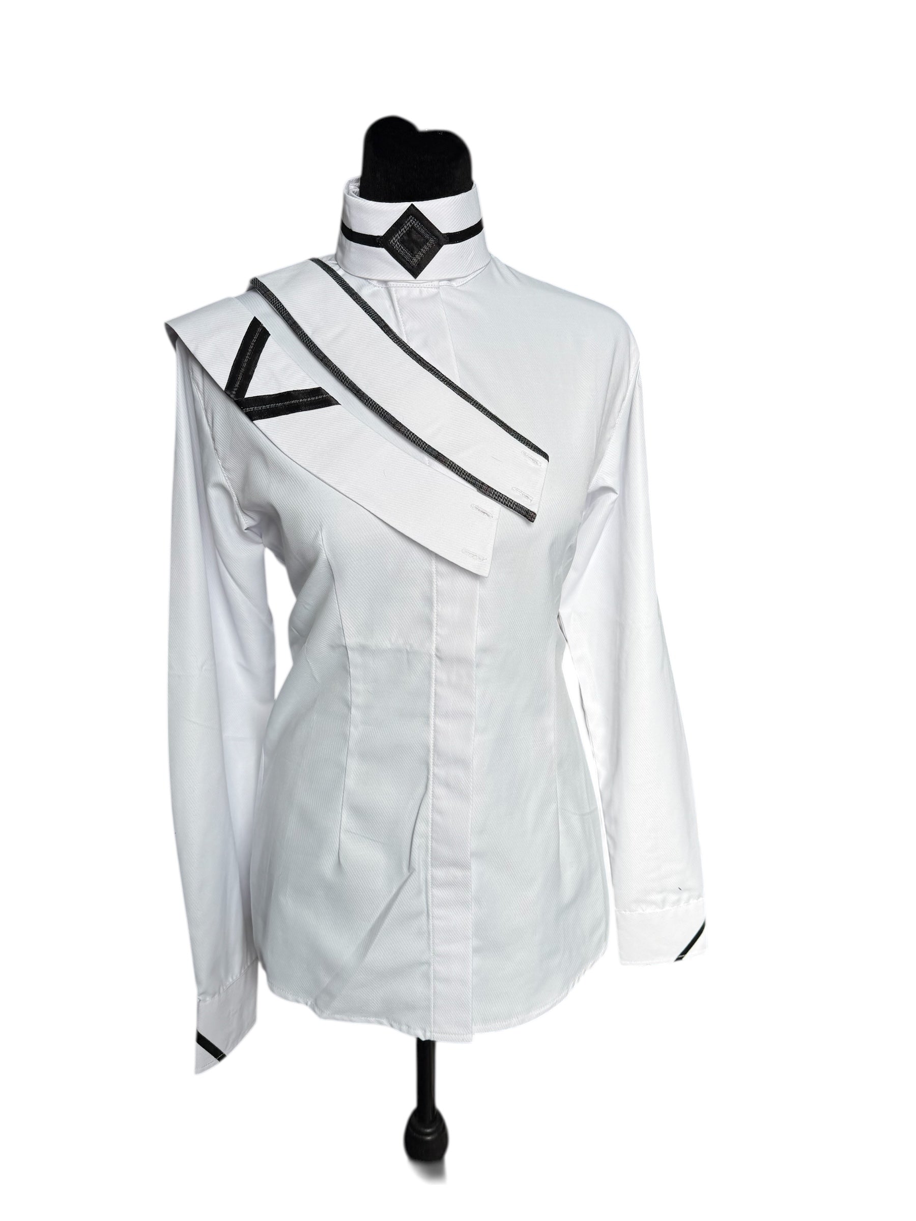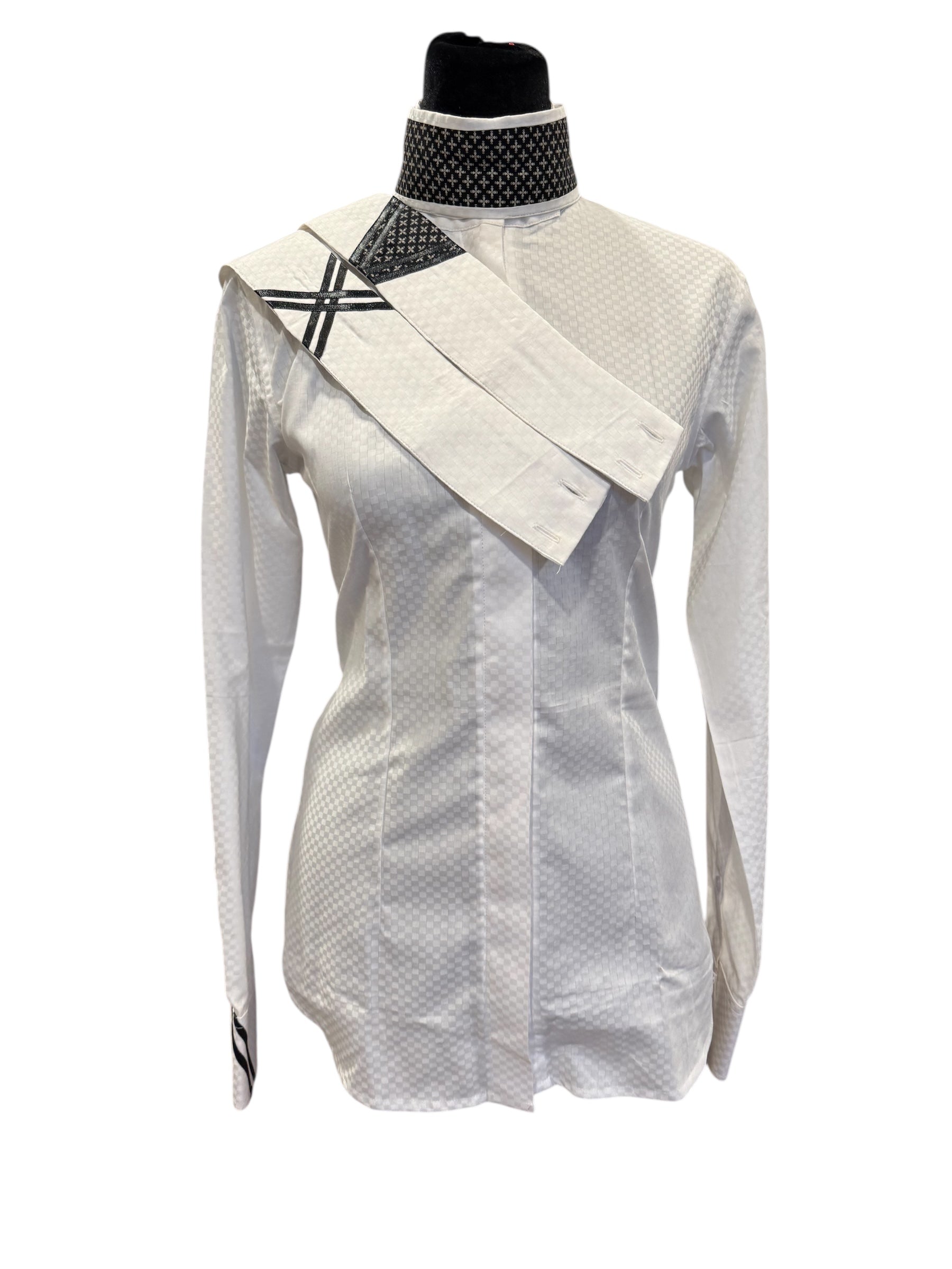 💥NEW💥English Show Shirt White with Black Design “Hidden Zipper”Fabric Code O23D